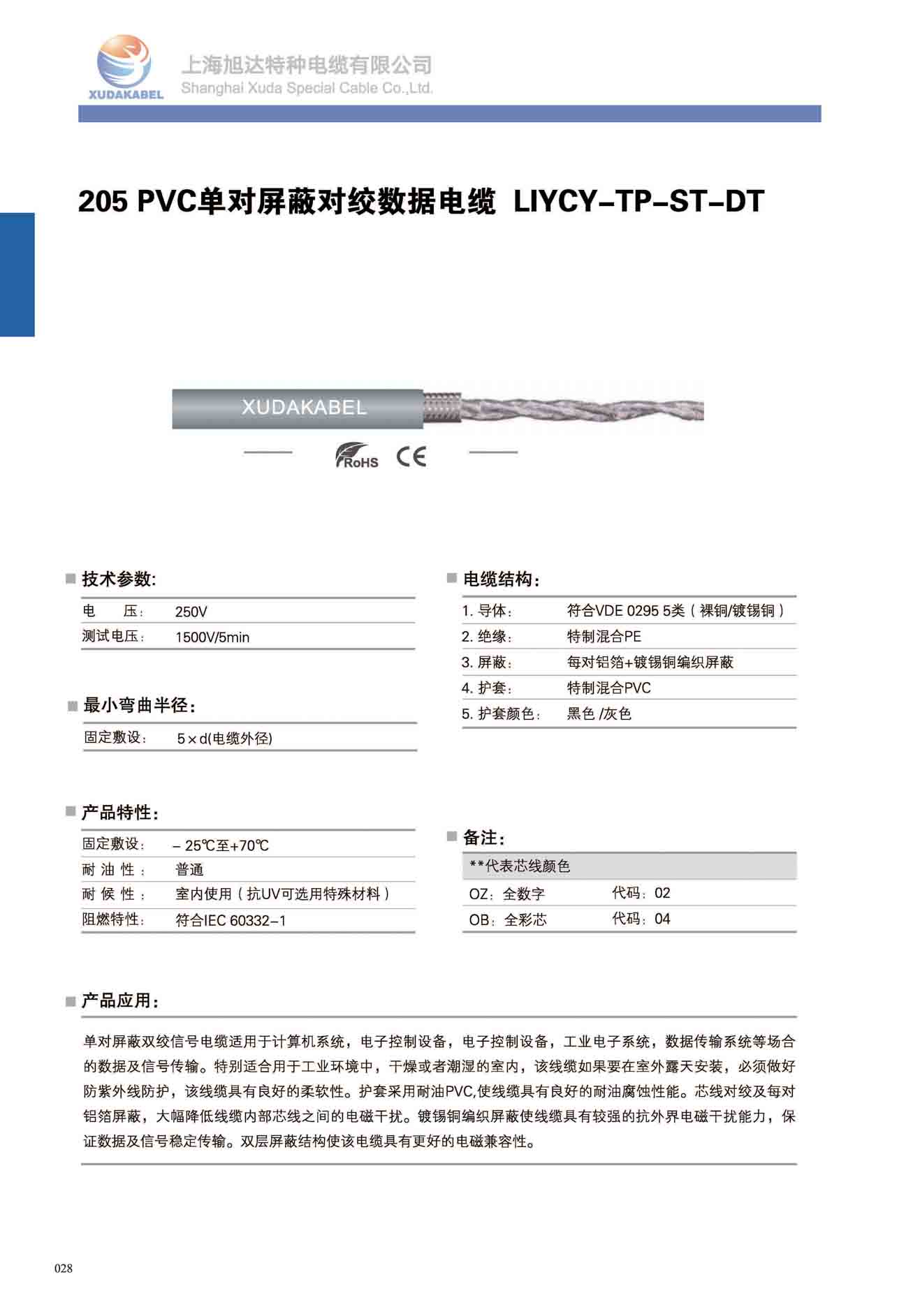 205 PVC單對(duì)屏蔽對(duì)絞數(shù)據(jù)電纜 LIYCY -TP-ST-DT