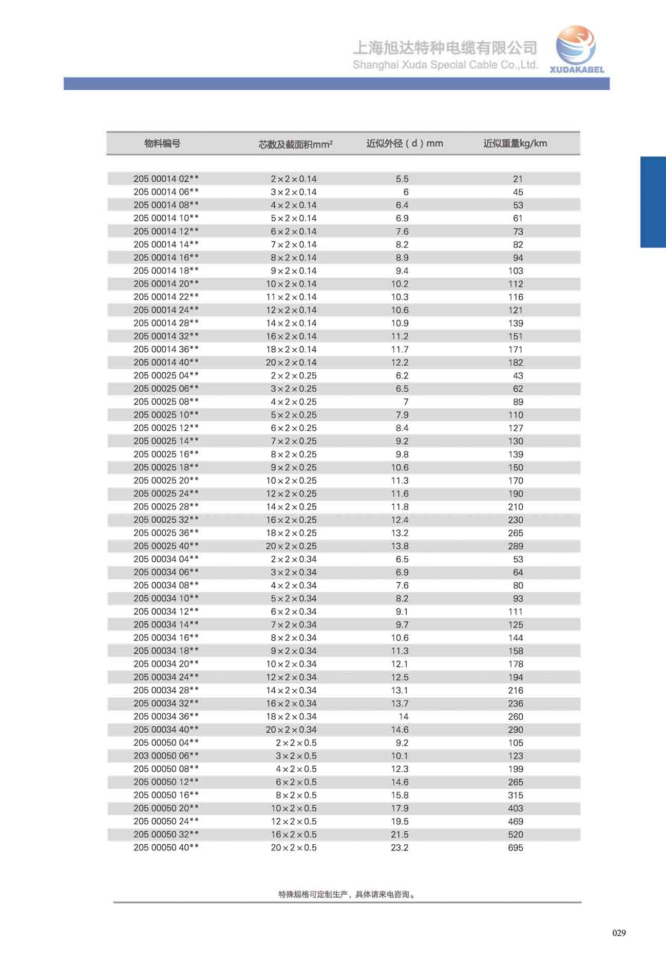 | 物料編號(hào) | 芯線及截面積mm2 | 最大外徑(d)mm | 電纜近似重量Kg/km |