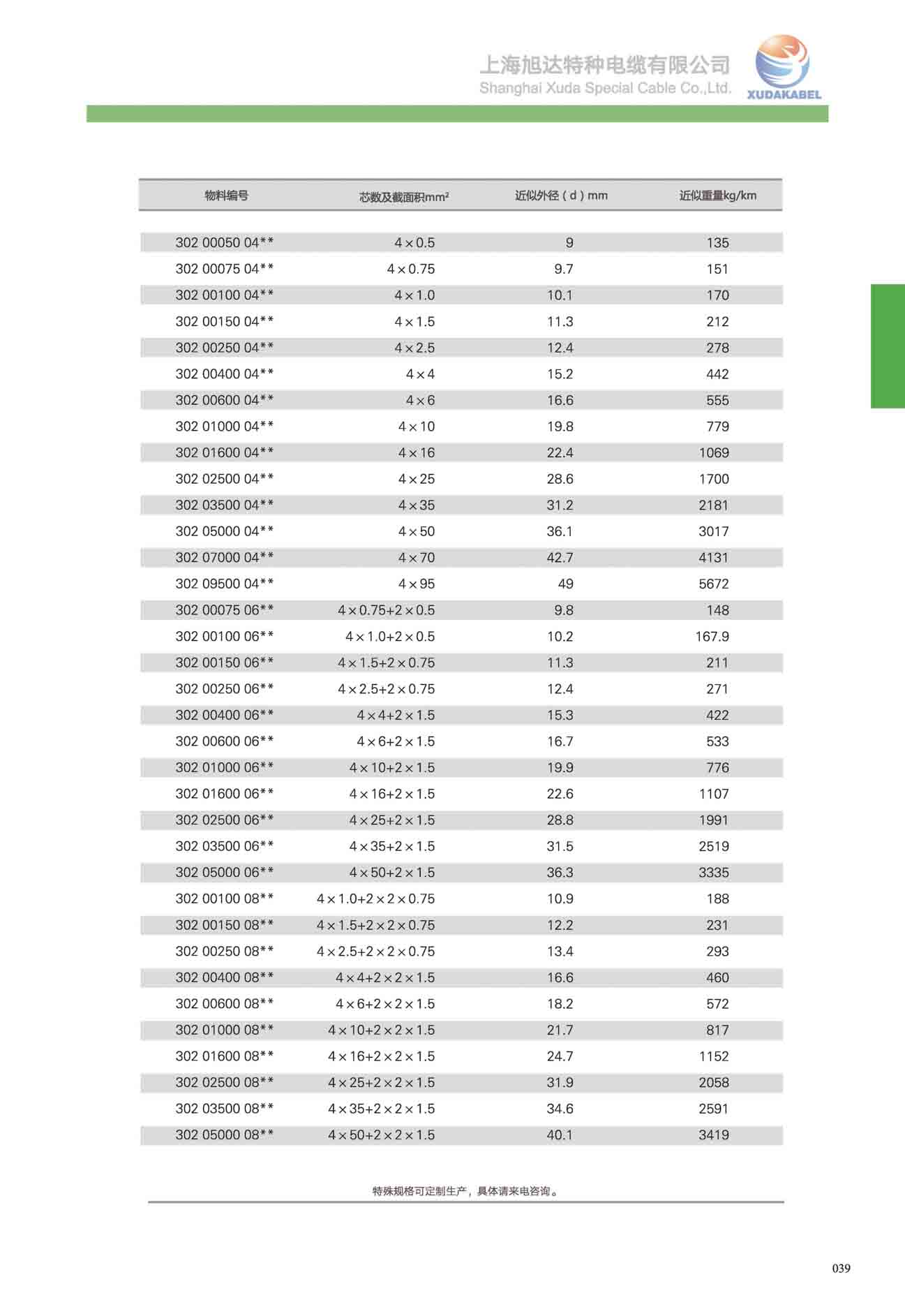 | 物料編號 | 芯線及截面積mm2 | 最大外徑(d)mm | 電纜近似重量Kg/km |